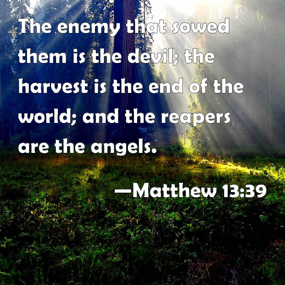 And the enemy that sowed them, is the devil. But the harvest is the end of the world. And the reapers are the angels.