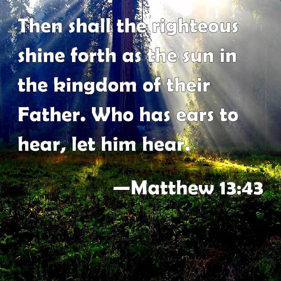 Matthew 13:43 Then shall the righteous shine forth as the sun in the kingdom of their Father. Who has ears to hear, let him hear.