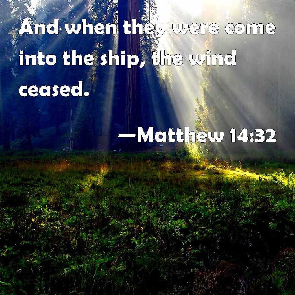 Matthew 14:32 And when they were come into the ship, the wind ceased.