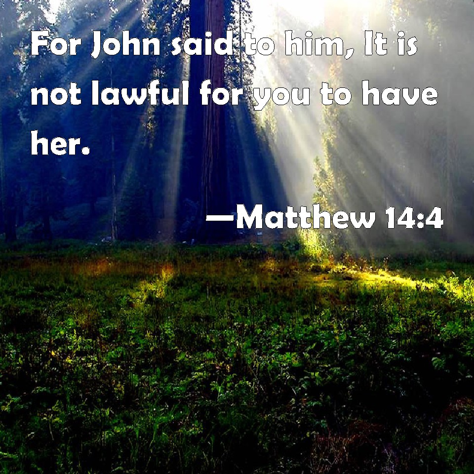 Matthew 14:4 For John said to him, It is not lawful for you to have her.