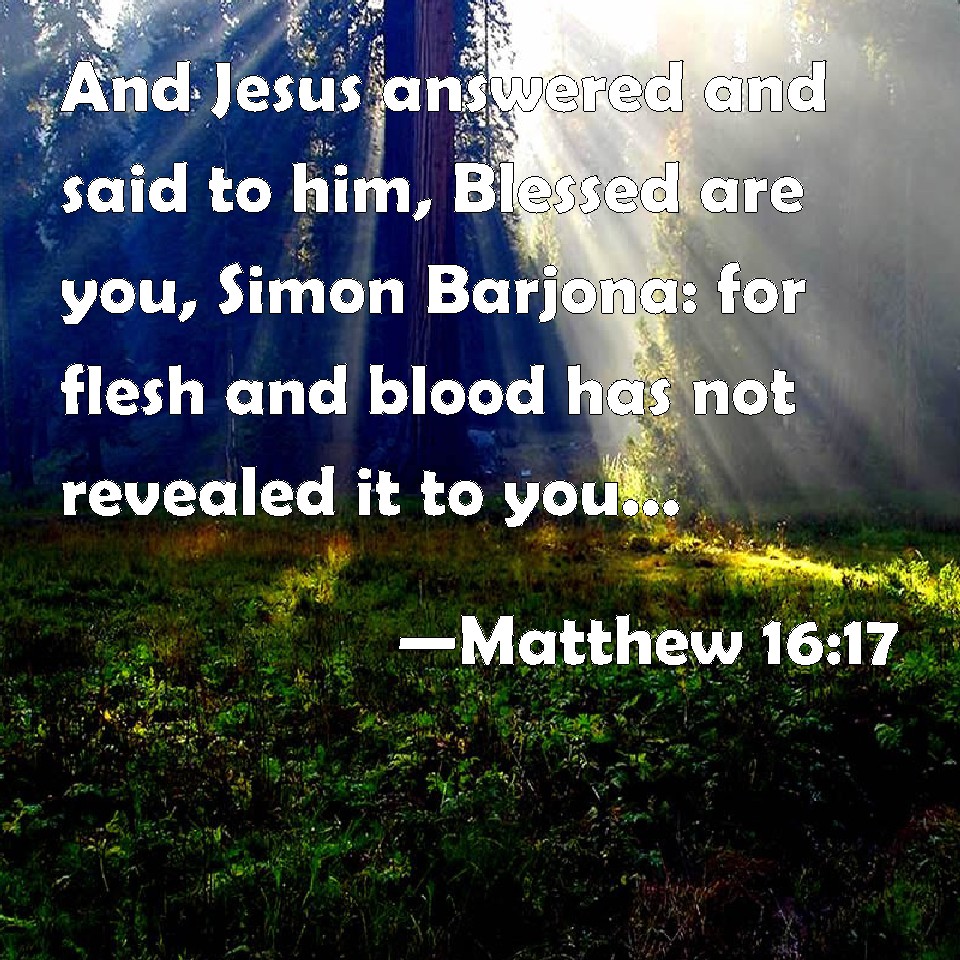Matthew 16:17 And Jesus answered and said to him, Blessed are you, Simon Barjona: for flesh and blood has not revealed it to you, but my Father which is in heaven.
