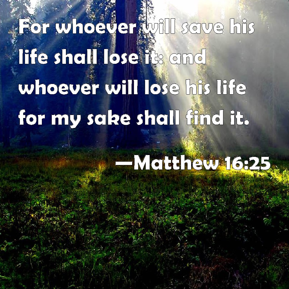 Matthew 16:25 For whoever will save his life shall lose it: and whoever will lose his life for my sake shall find it.