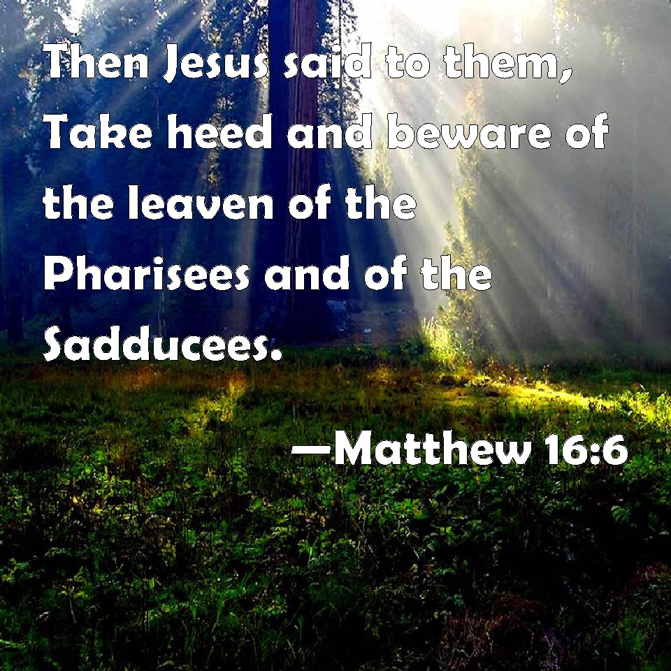 Matthew 16:6 Then Jesus said to them, Take heed and beware of the leaven of the Pharisees and of the Sadducees.