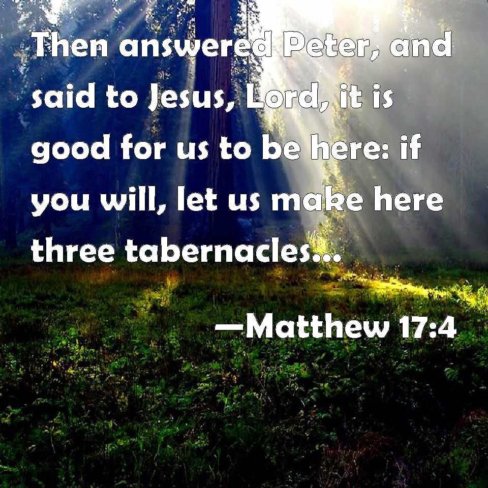 Matthew 17:4 Then answered Peter, and said to Jesus, Lord, it is good for us to be here: if you will, let us make here three tabernacles; one for you, and one for Moses, and one for Elias.