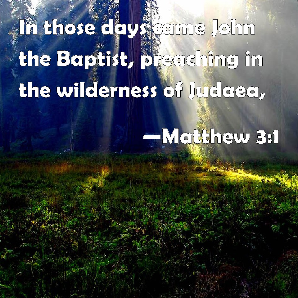 Choose a Background Matthew 3:1 In those days came John the Baptist, preaching in the wilderness of Judaea, KJV: In those days came John the Baptist, preaching in the wilderness of Judaea, DRB: AND in those days cometh John the Baptist preaching in the desert of Judea. DBT: Now in those days comes John the baptist, preaching in the wilderness of Judaea, ERV: And in those days cometh John the Baptist, preaching in the wilderness of Judaea, WBT: In those days came John the Baptist, preaching in the wilderness of Judea, WEB: In those days, John the Baptizer came, preaching in the wilderness of Judea, saying, YLT: And in those days cometh John the Baptist, proclaiming in the wilderness of Judea,Links Matthew 3:1 NIV • Matthew 3:1 NLT • Matthew 3:1 ESV • Matthew 3:1 NASB • Matthew 3:1 KJV • Matthew 3:1 Interlinear • Matthew 3:1 Commentaries • Matthew 3:1 Parallel Texts • Matthew 3:1 Bible Apps • Matthew 3:1 Parallel • Bible Hub |