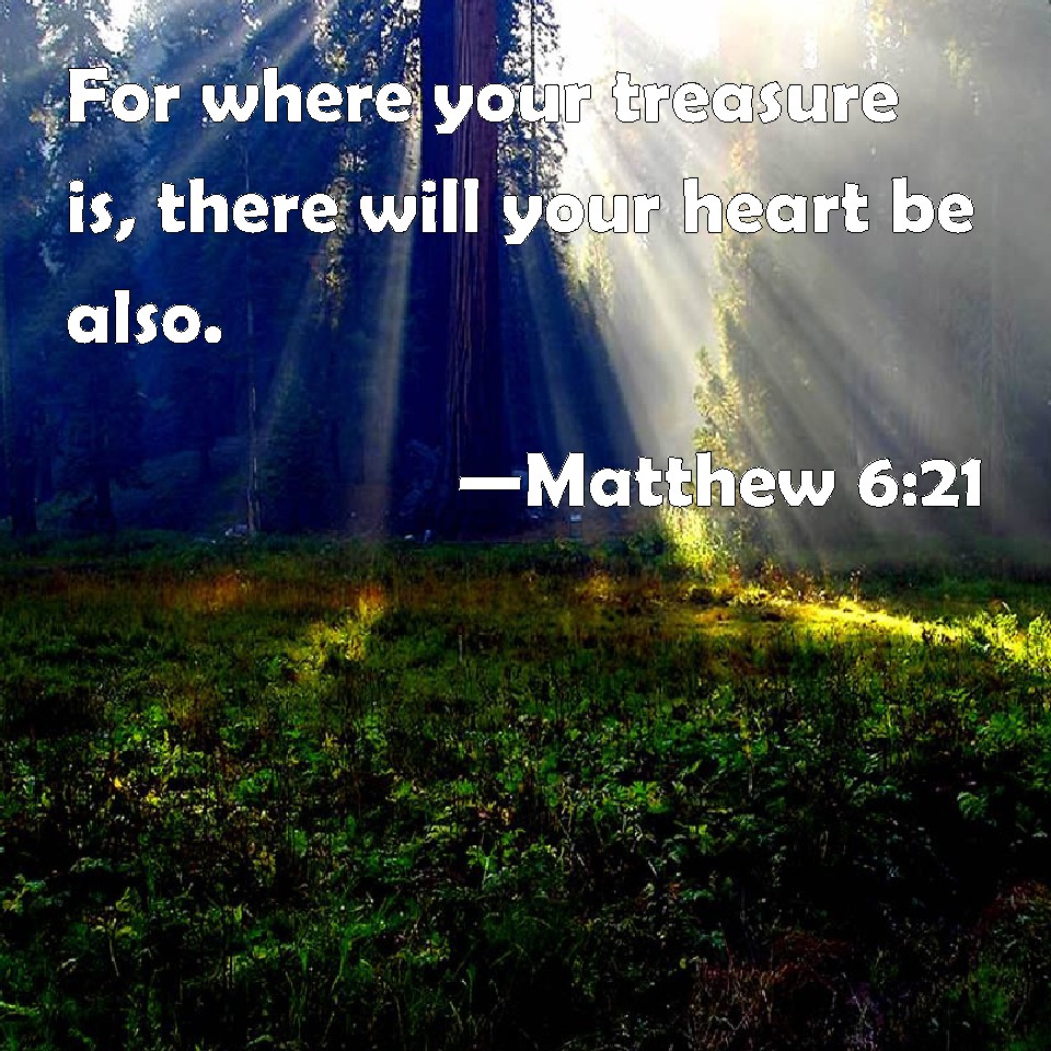 Matthew 6:21 For where your treasure is, there will your heart be also.