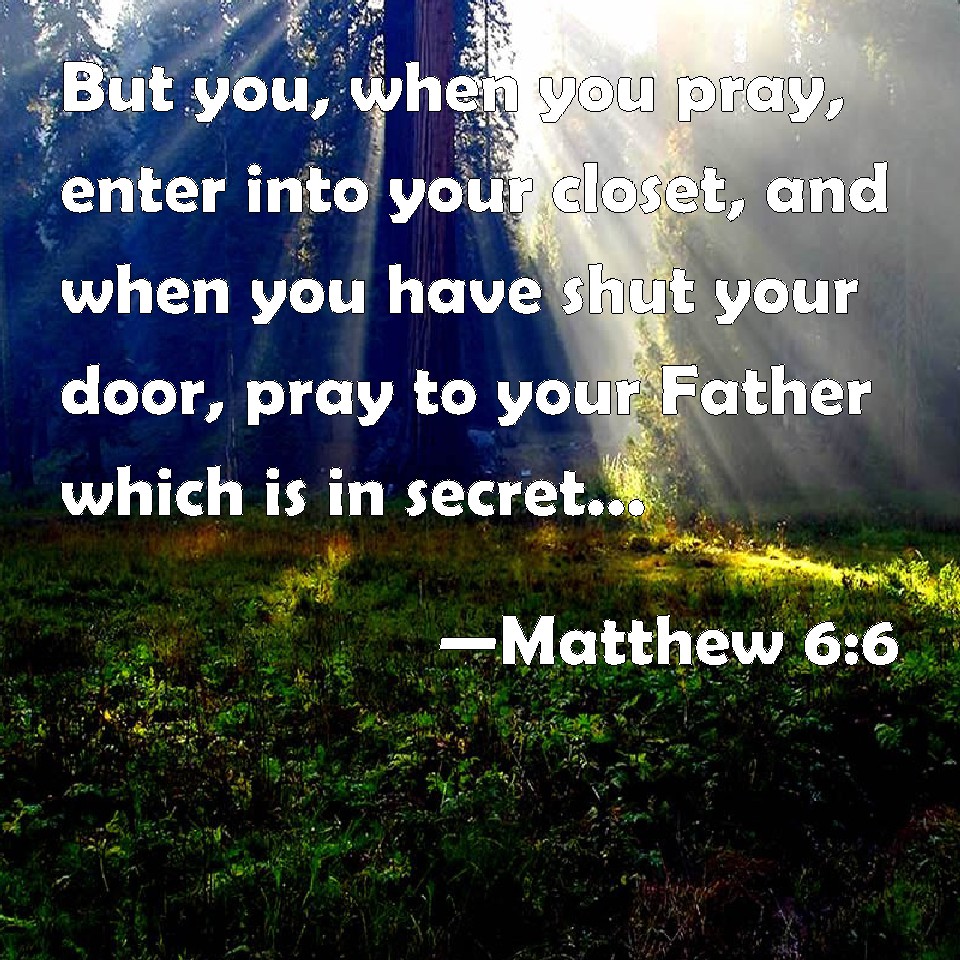 Matthew 6:6 But you, when you pray, enter into your closet, and when you have shut your door, pray to your Father which is in secret; and your Father which sees in secret shall reward you openly.