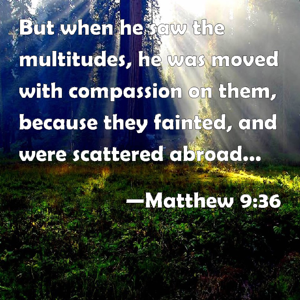 Matthew 9:36 But when he saw the multitudes, he was moved with compassion on them, because they fainted, and were scattered abroad, as sheep having no shepherd.
