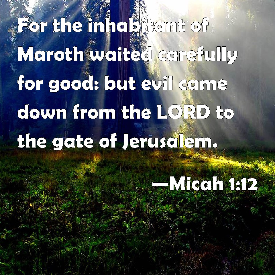 Micah 1:12 For the inhabitant of Maroth waited carefully for good: but evil came down from the LORD to the gate of Jerusalem.