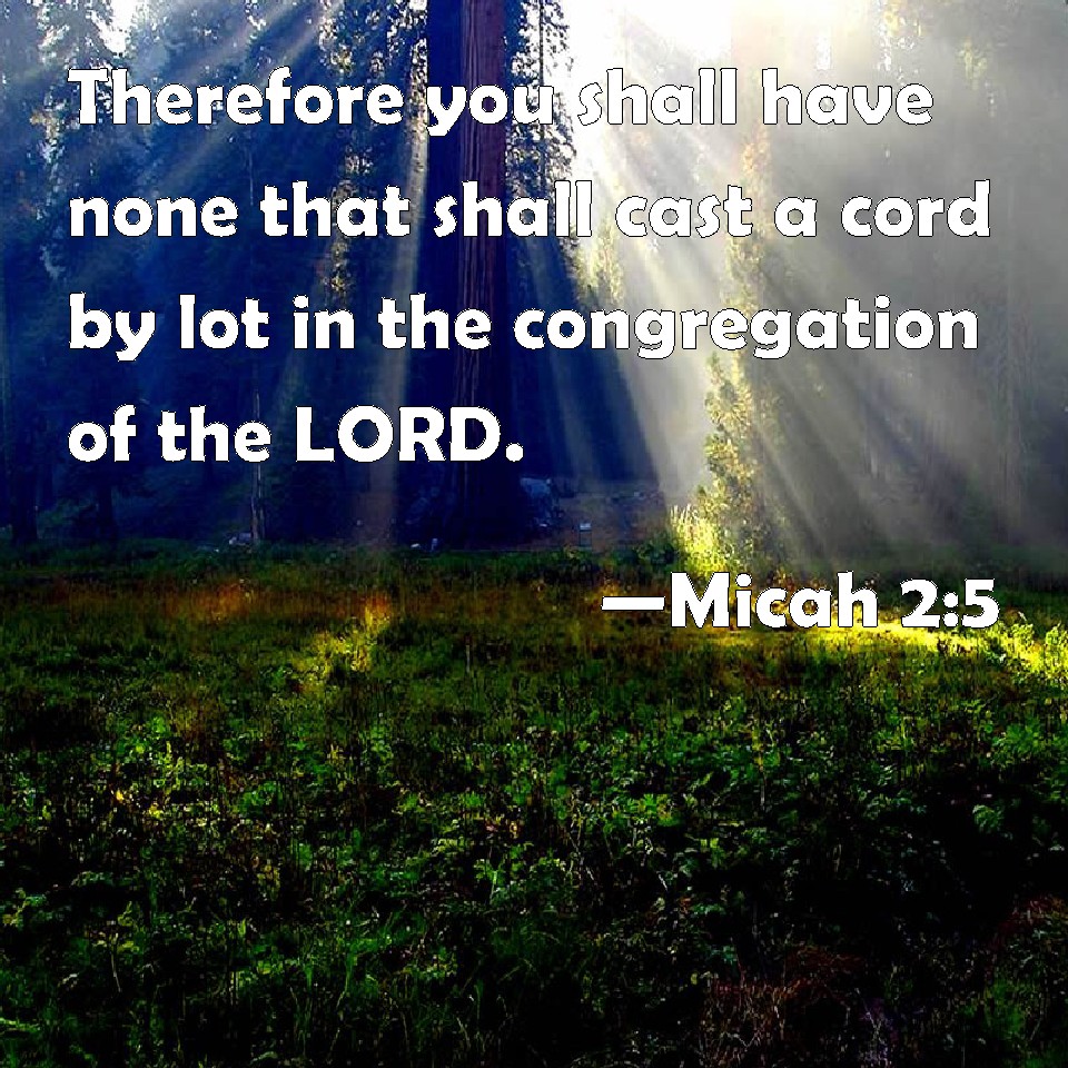 Micah 2:5 Therefore you shall have none that shall cast a cord by lot in the congregation of the LORD.