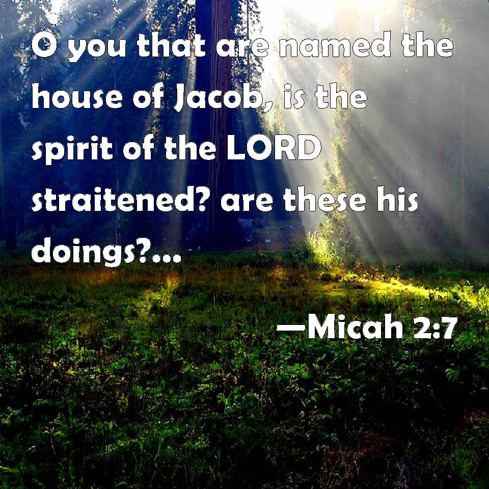 Micah 2:7 O you that are named the house of Jacob, is the spirit of the LORD straitened? are these his doings? do not my words do good to him that walks uprightly?