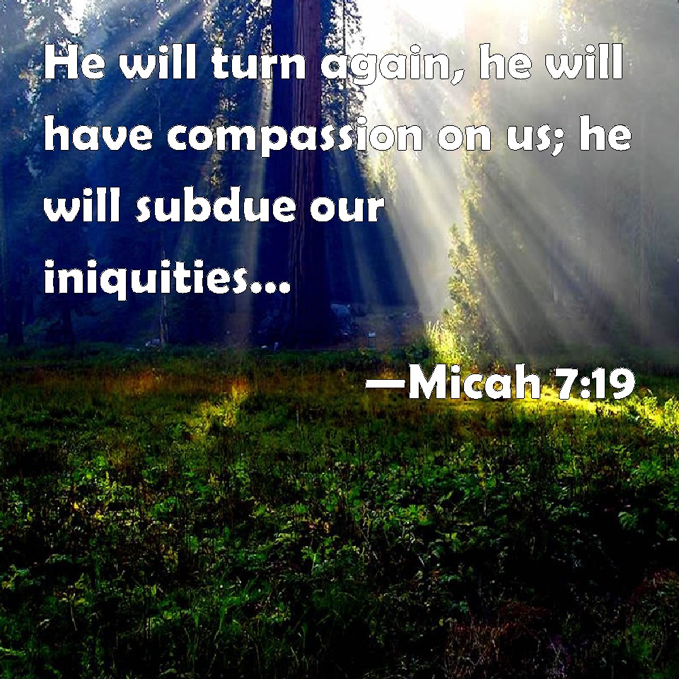 He will turn again, he will have compassion upon us; he will subdue our iniquities; and thou wilt cast all their sins into the depths of the sea.