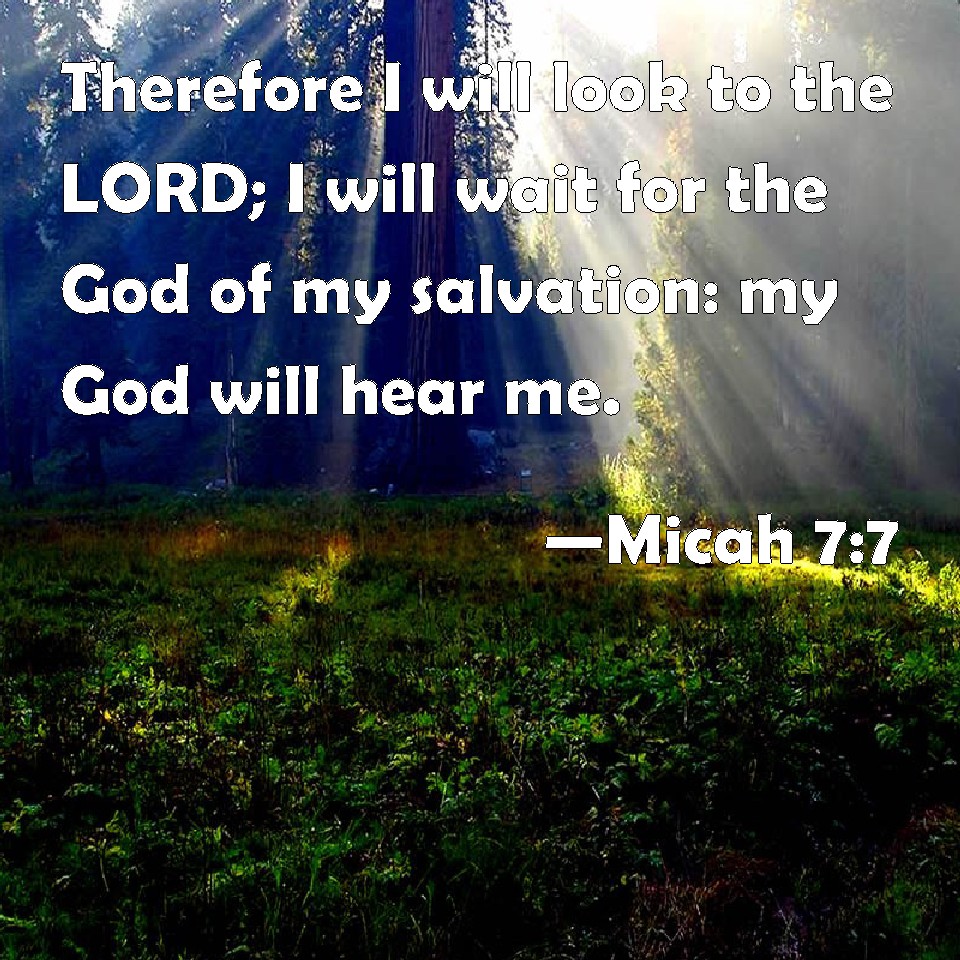Micah 7:7 Therefore I will look to the LORD; I will wait for the God of my salvation: my God will hear me.