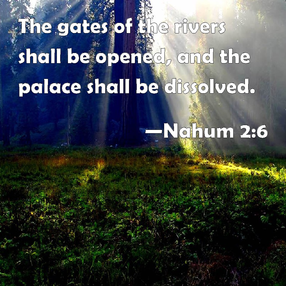 Nahum 2:6 The gates of the rivers shall be opened, and the palace shall be dissolved.