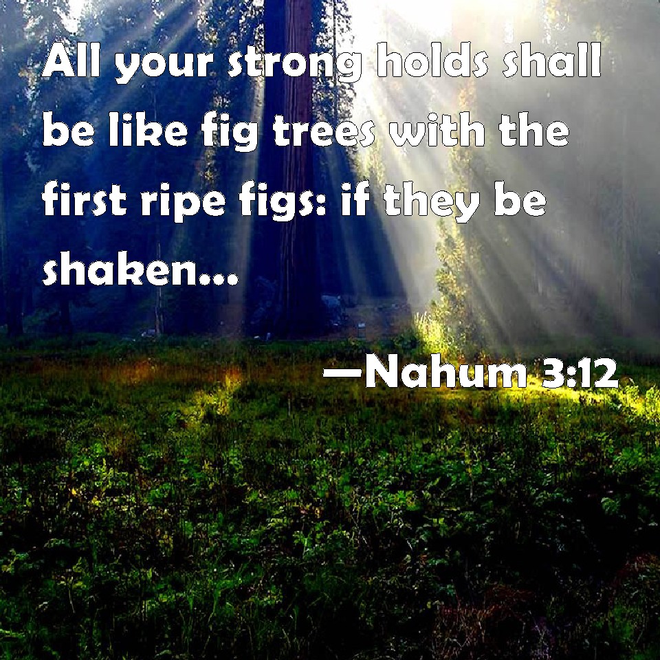 All thy strong holds shall be like fig-trees with the first ripe figs: if they be shaken, they shall even fall into the mouth of the eater.