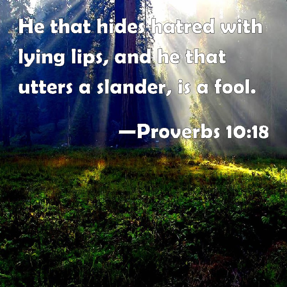 Proverbs 10:18 He that hides hatred with lying lips, and he that utters a slander, is a fool.