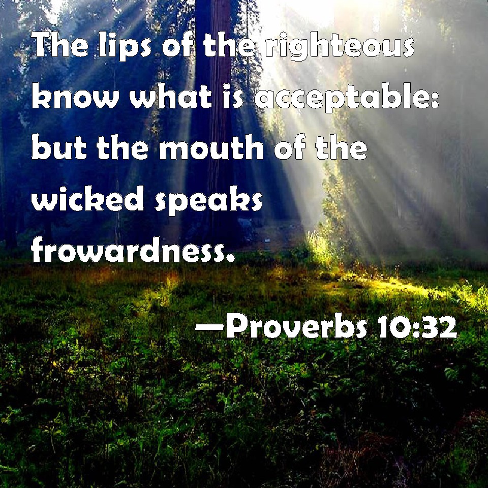 Proverbs 10:32 The lips of the righteous know what is acceptable: but the mouth of the wicked speaks frowardness.