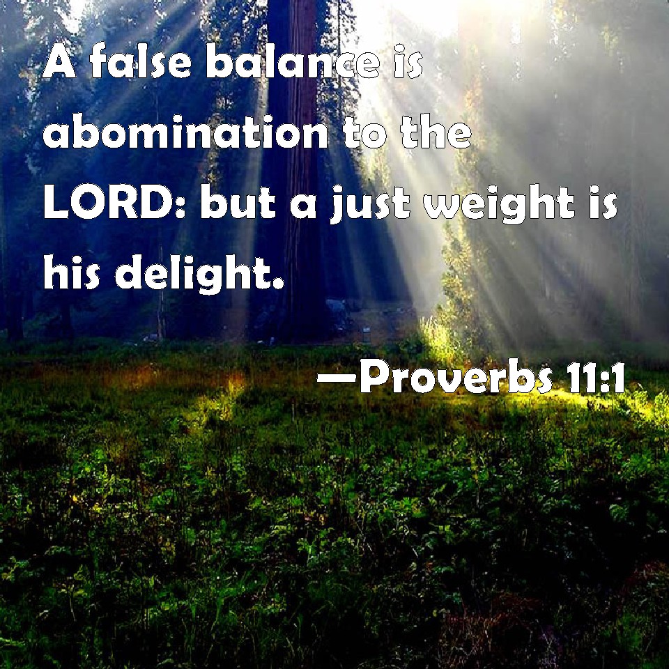 Proverbs 11:1 A false balance is abomination to the LORD: but a just weight is his delight.