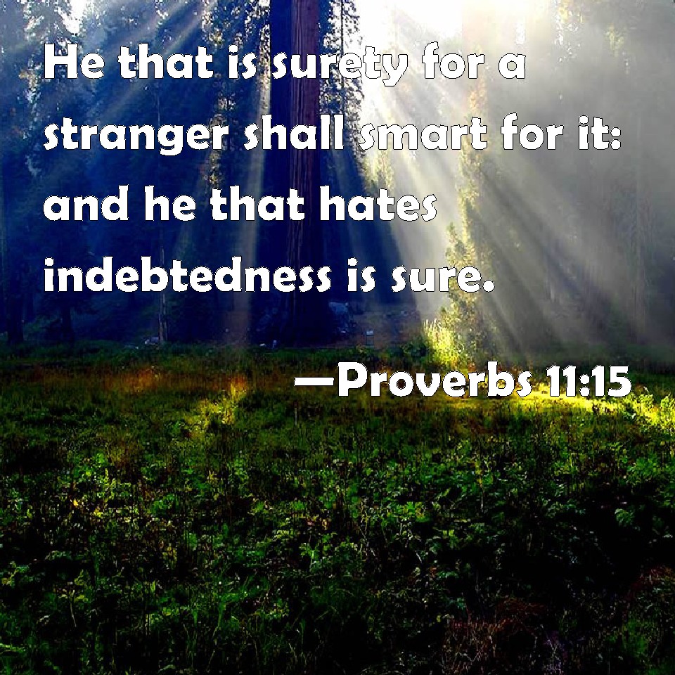 Proverbs 11:15 He that is surety for a stranger shall smart for it: and he that hates indebtedness is sure.