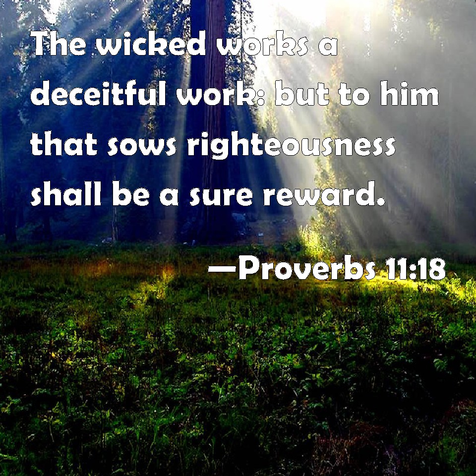 Proverbs 11:18 The wicked works a deceitful work: but to him that sows righteousness shall be a sure reward.