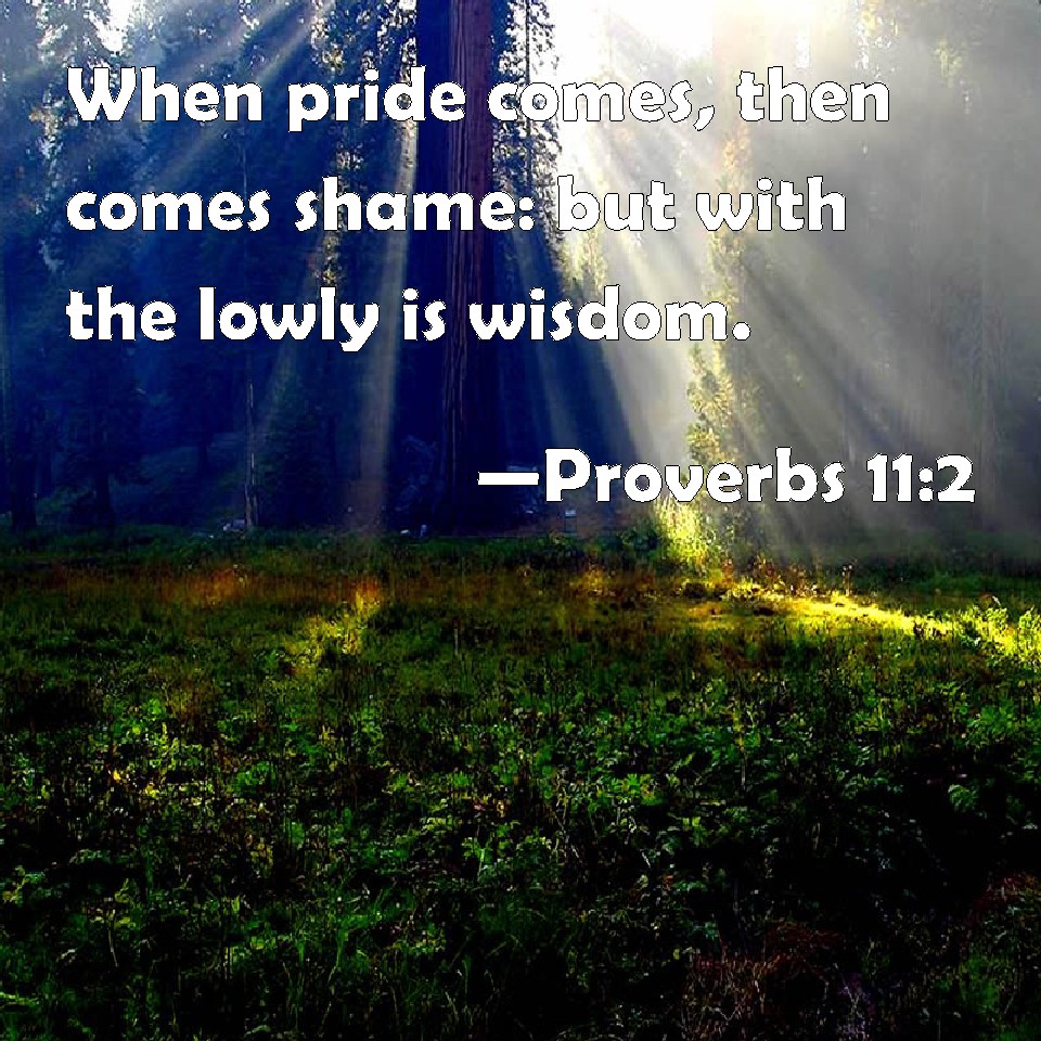 Choose a Background Proverbs 11:2 When pride comes, then comes shame: but with the lowly is wisdom. KJV: When pride cometh, then cometh shame: but with the lowly is wisdom. DRB: Where pride is, there also shall be reproach: but where humility is, there also is wisdom. DBT: When pride cometh, then cometh shame; but with the lowly is wisdom. ERV: When pride cometh, then cometh shame: but with the lowly is wisdom. WBT: When pride cometh, then cometh shame: but with the lowly is wisdom. WEB: When pride comes, then comes shame, but with humility comes wisdom. YLT: Pride hath come, and shame cometh, And with the lowly is wisdom.Links Proverbs 11:2 NIV • Proverbs 11:2 NLT • Proverbs 11:2 ESV • Proverbs 11:2 NASB • Proverbs 11:2 KJV • Proverbs 11:2 Interlinear • Proverbs 11:2 Commentaries • Proverbs 11:2 Parallel Texts • Proverbs 11:2 Bible Apps • Proverbs 11:2 Parallel • Bible Hub |