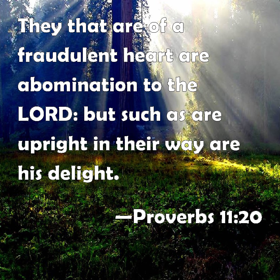Proverbs 11:20 They that are of a fraudulent heart are abomination to the LORD: but such as are upright in their way are his delight.