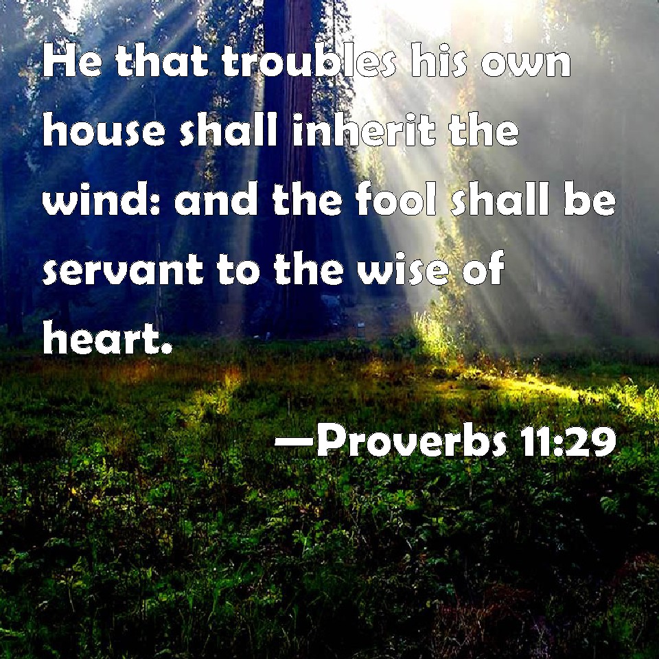 Proverbs 11:29 He that troubles his own house shall inherit the wind: and the fool shall be servant to the wise of heart.
