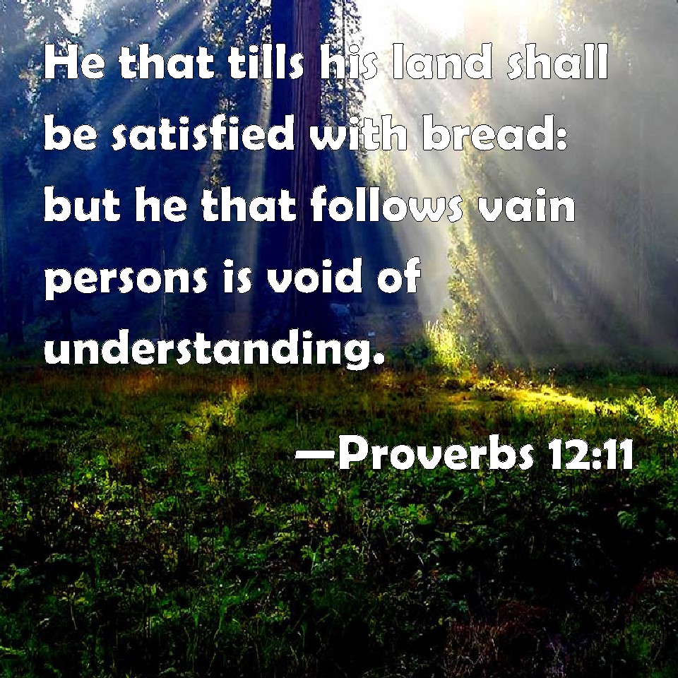Proverbs 12:11 He that tills his land shall be satisfied with bread: but he that follows vain persons is void of understanding.