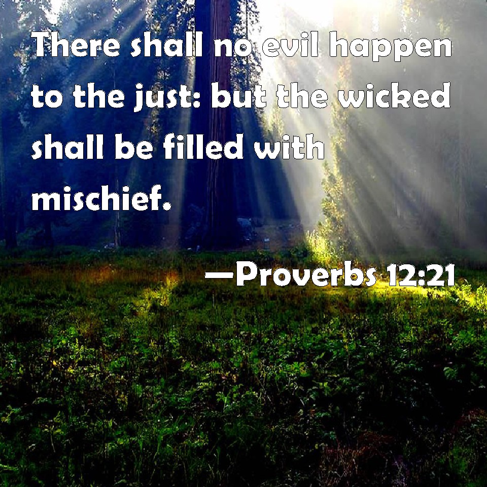 Proverbs 12:21 There shall no evil happen to the just: but the wicked shall be filled with mischief.