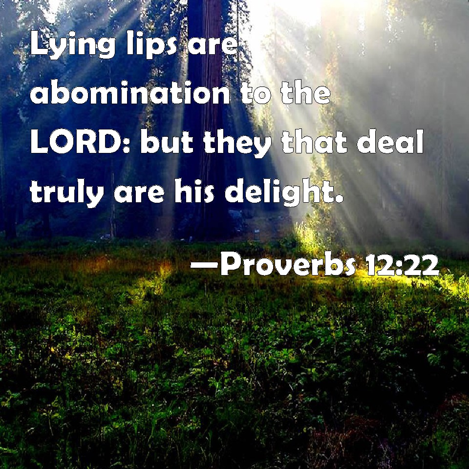 Proverbs 12:22 Lying lips are abomination to the LORD: but they that deal truly are his delight.