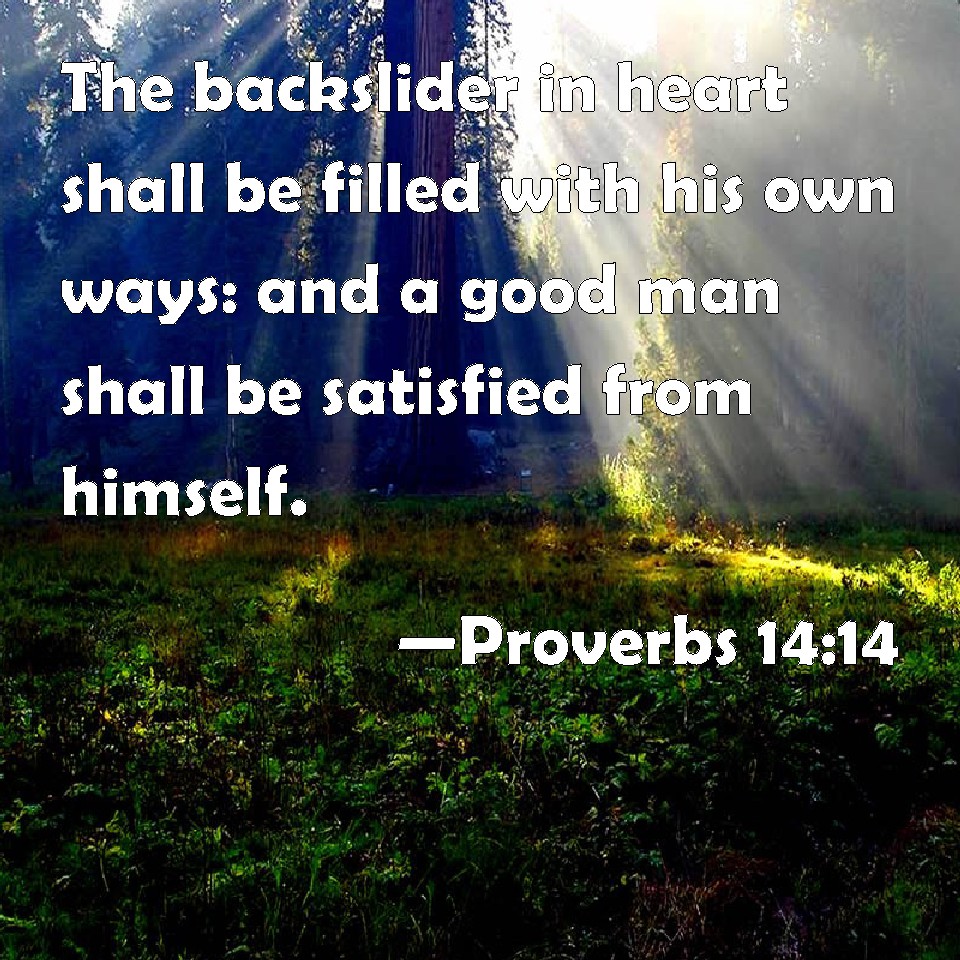 Proverbs 14:14 The backslider in heart shall be filled with his own ways: and a good man shall be satisfied from himself.