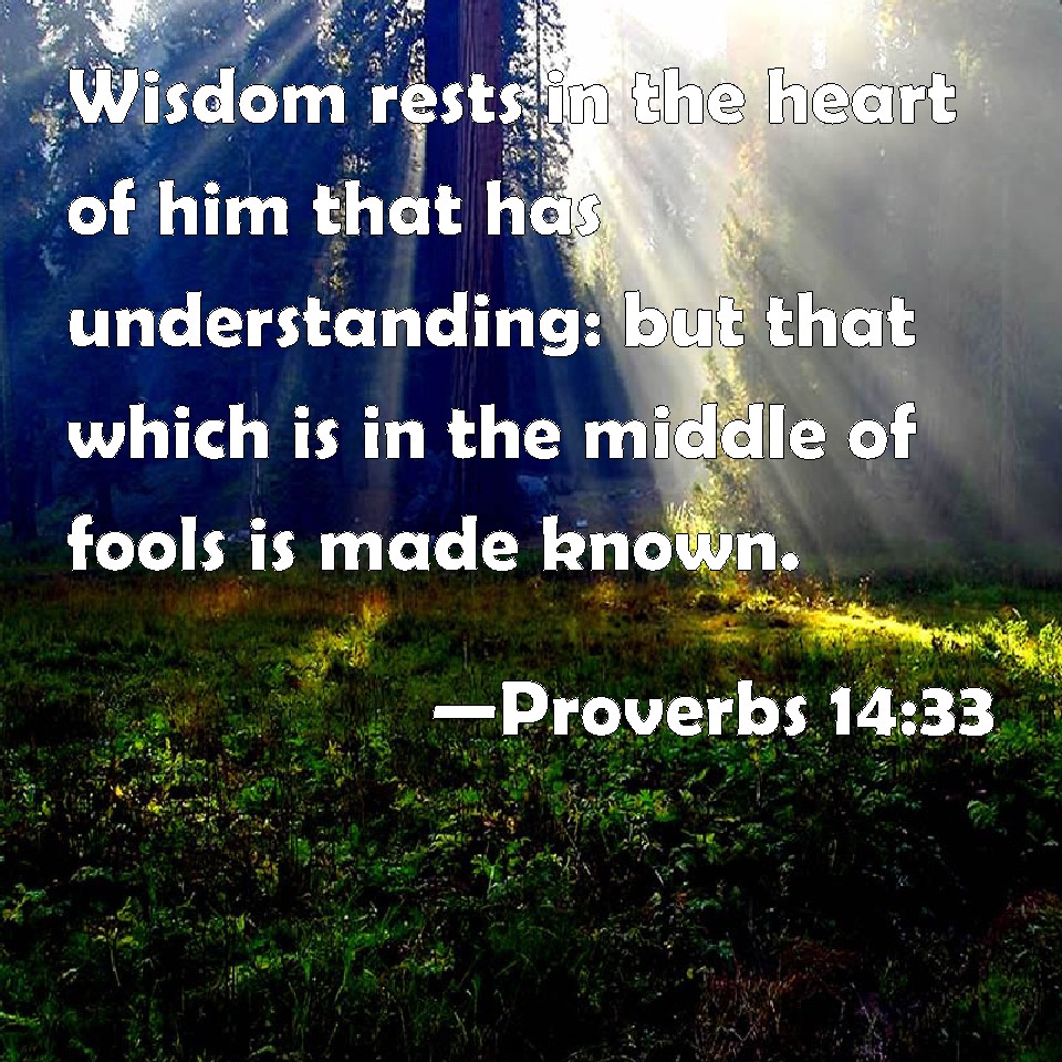 Proverbs 14:33 Wisdom rests in the heart of him that has understanding: but that which is in the middle of fools is made known.