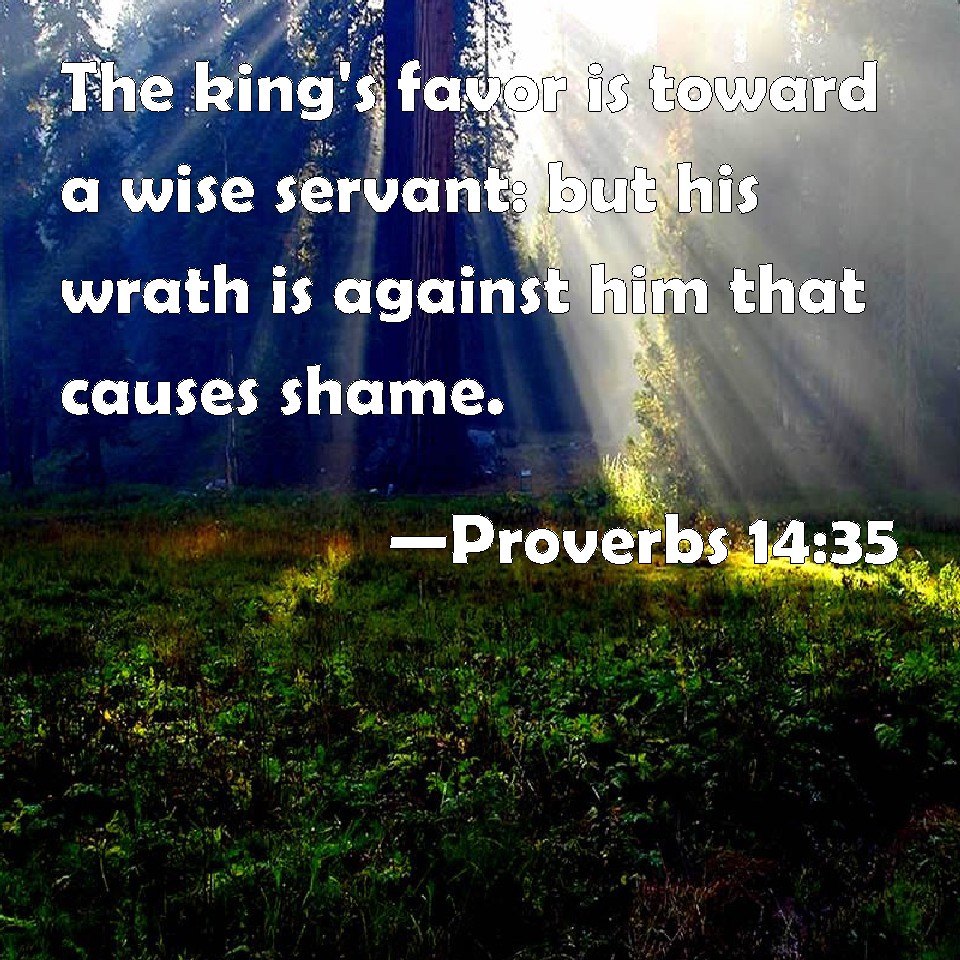 Proverbs 14:35 The king's favor is toward a wise servant: but his wrath is against him that causes shame.