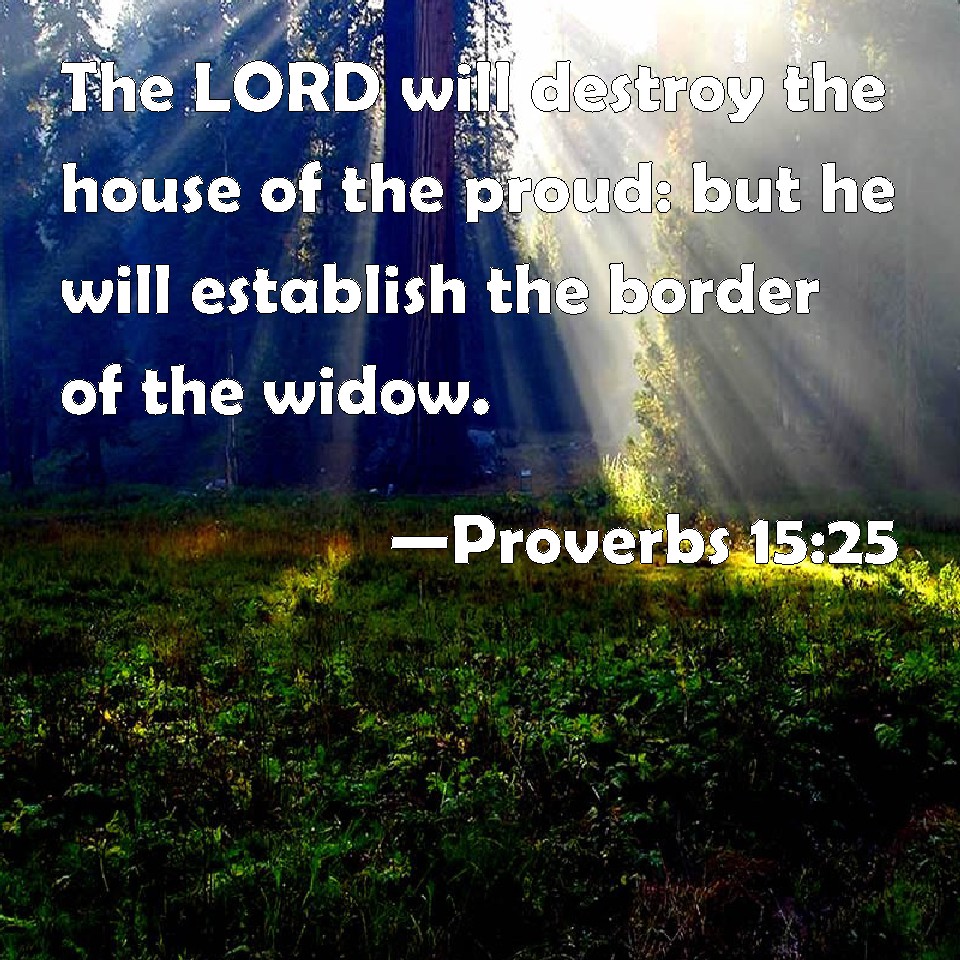 Proverbs 15:25 The LORD will destroy the house of the proud: but he will establish the border of the widow.
