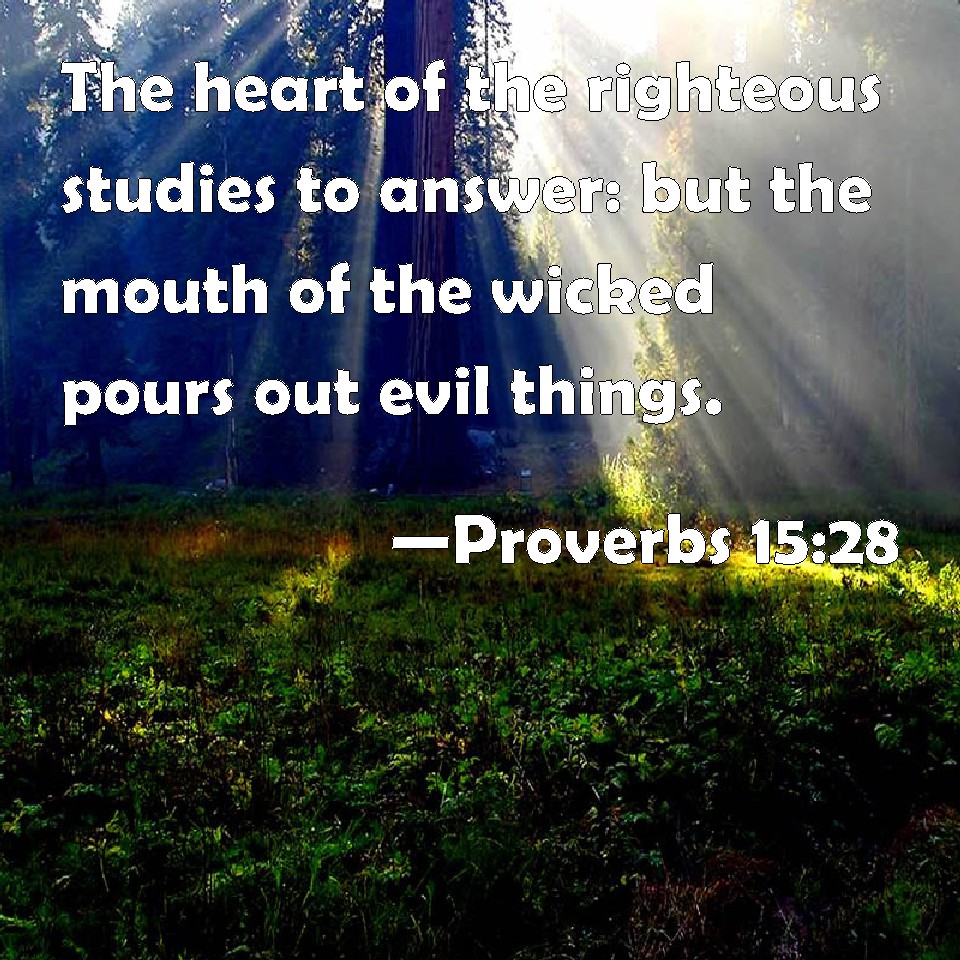Proverbs 15:28 The heart of the righteous studies to answer: but the mouth of the wicked pours out evil things.