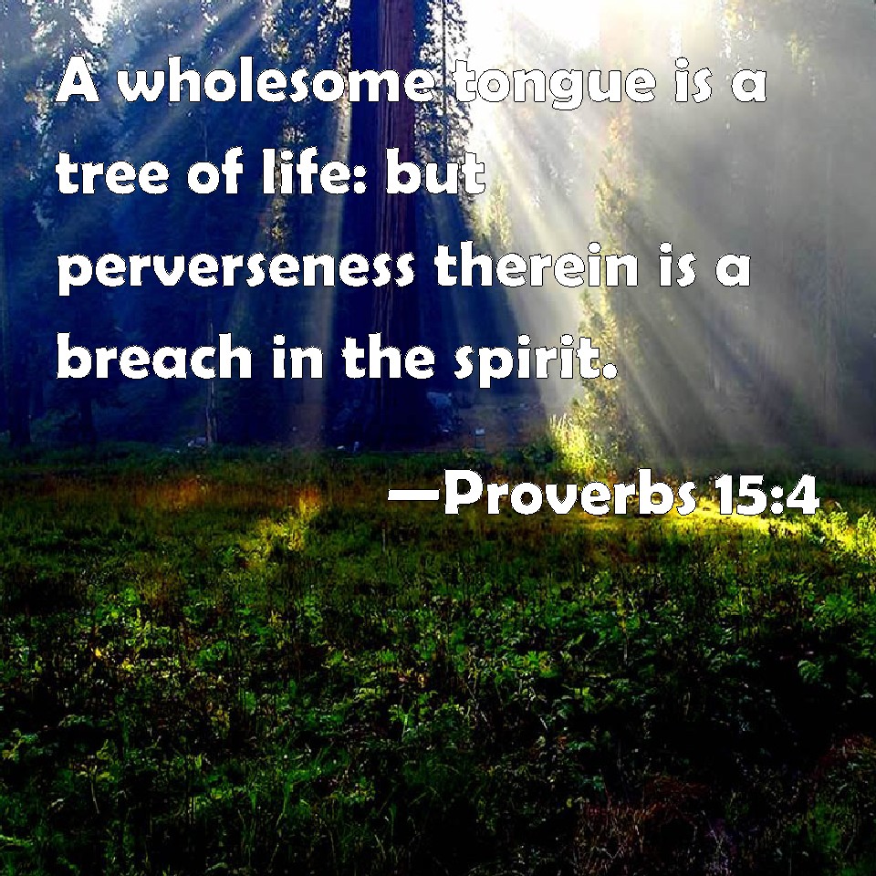 Proverbs 15:4 A wholesome tongue is a tree of life: but perverseness therein is a breach in the spirit.