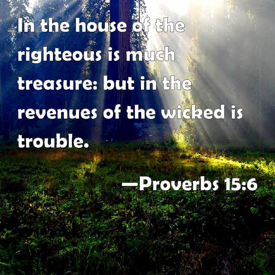 Proverbs 15:6 In the house of the righteous is much treasure: but in the revenues of the wicked is trouble.