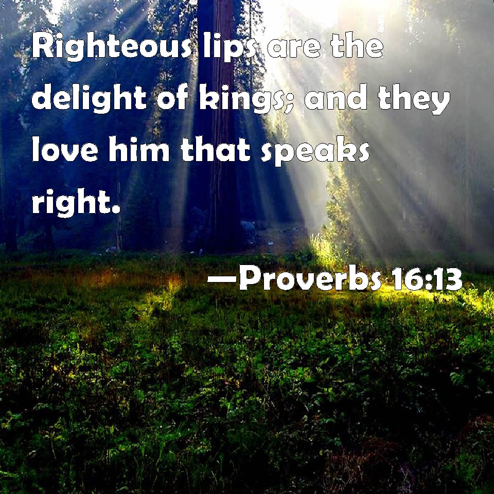 Proverbs 16:13 Righteous lips are the delight of kings; and they love him that speaks right.