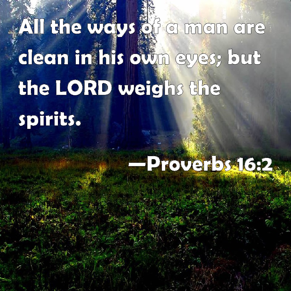 Proverbs 16:2 All the ways of a man are clean in his own eyes; but the LORD weighs the spirits.
