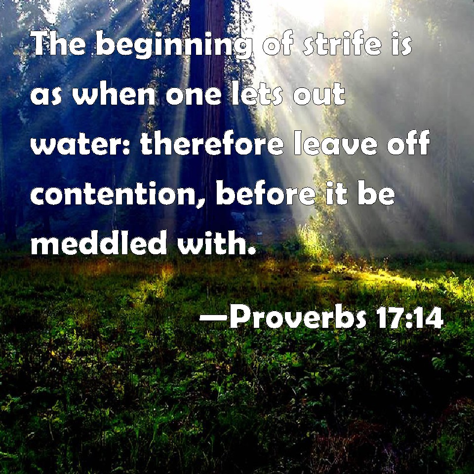 Proverbs 17:14 The beginning of strife is as when one lets out water: therefore leave off contention, before it be meddled with.