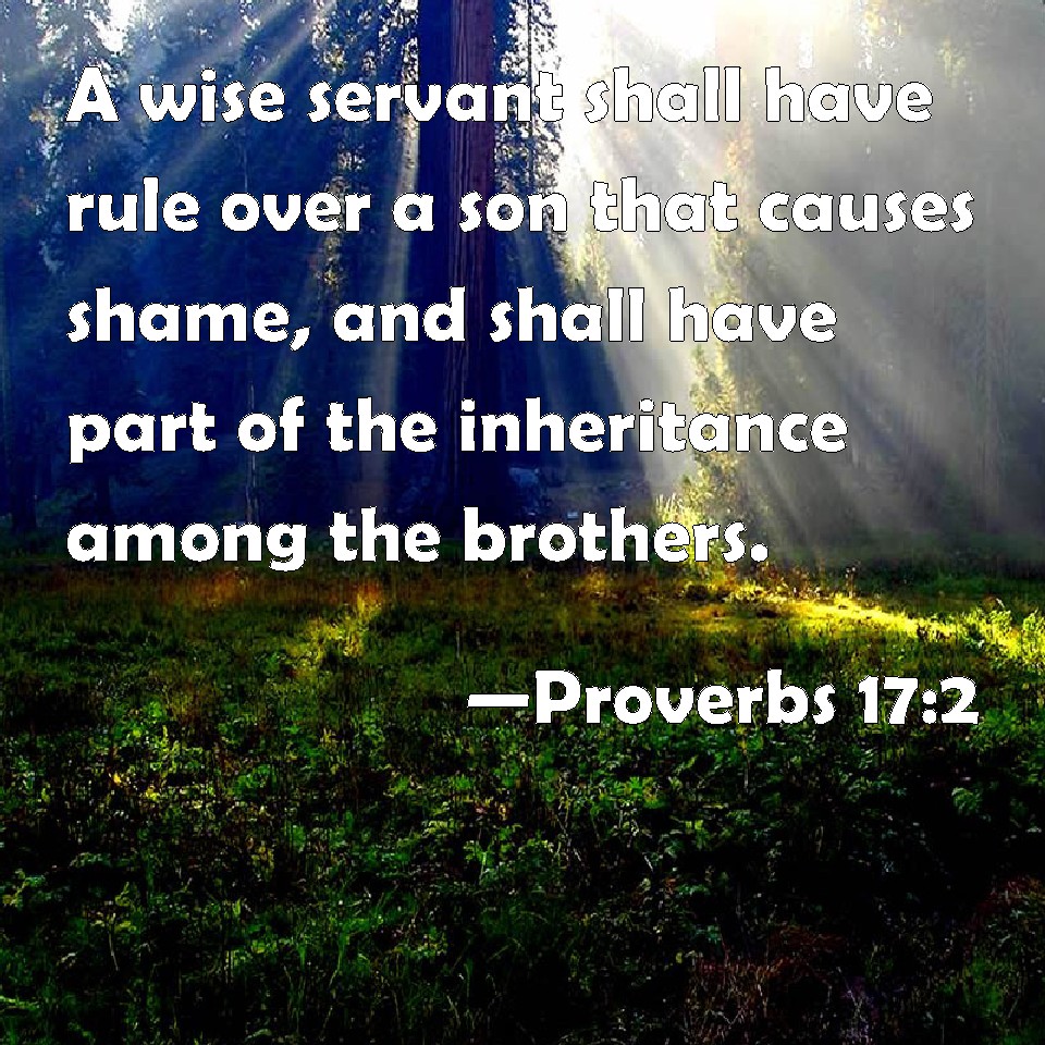 Proverbs 17:2 A wise servant shall have rule over a son that causes shame, and shall have part of the inheritance among the brothers.