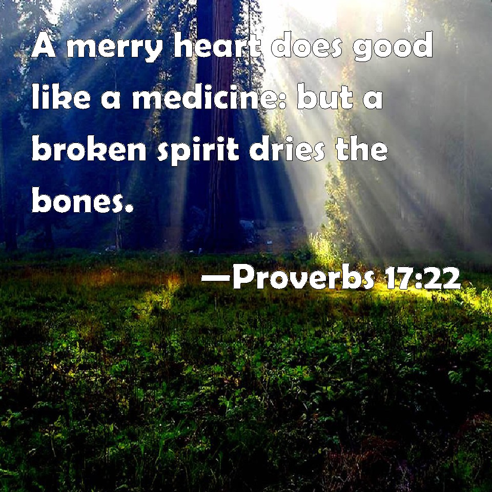 Proverbs 17:22 A merry heart does good like a medicine: but a broken spirit dries the bones.