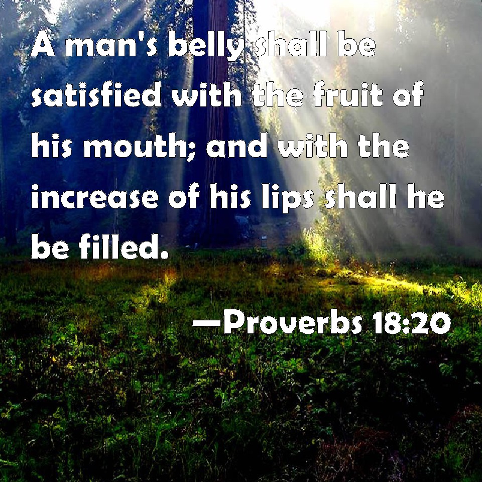 Proverbs 18:20 A man's belly shall be satisfied with the fruit of his mouth; and with the increase of his lips shall he be filled.