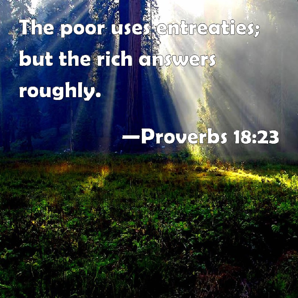Proverbs 18:23 The poor uses entreaties; but the rich answers roughly.