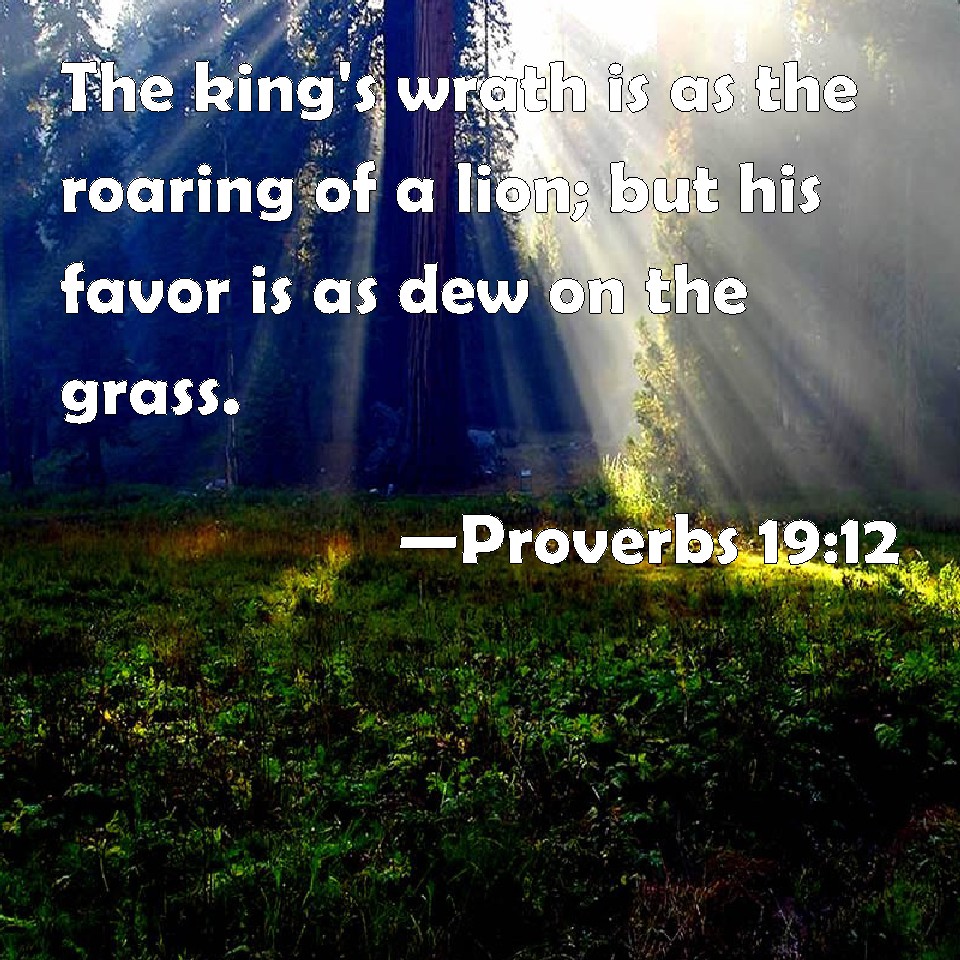 Proverbs 19:12 The king's wrath is as the roaring of a lion; but his favor is as dew on the grass.