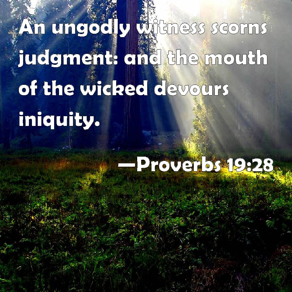 Proverbs 19:28 An ungodly witness scorns judgment: and the mouth of the wicked devours iniquity.