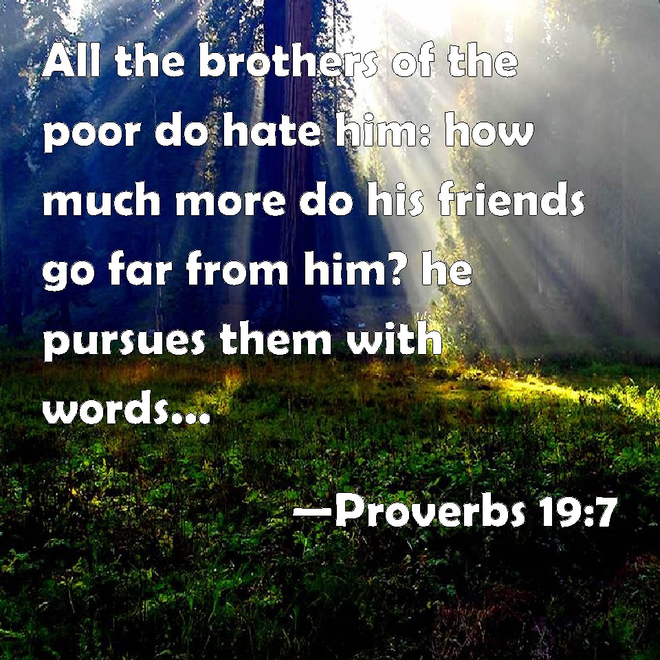 Proverbs 19:7 All the brothers of the poor do hate him: how much more do his friends go far from him? he pursues them with words, yet they are wanting to him.