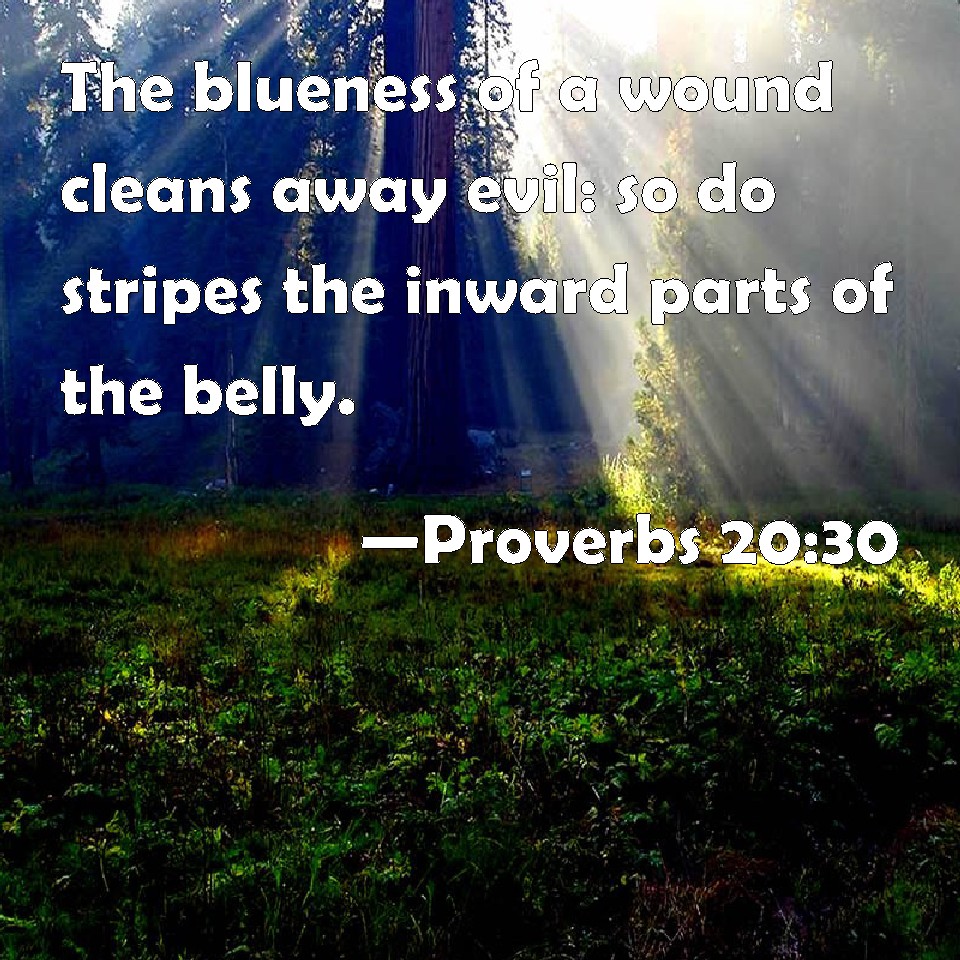 Proverbs 20:30 The blueness of a wound cleans away evil: so do stripes the inward parts of the belly.