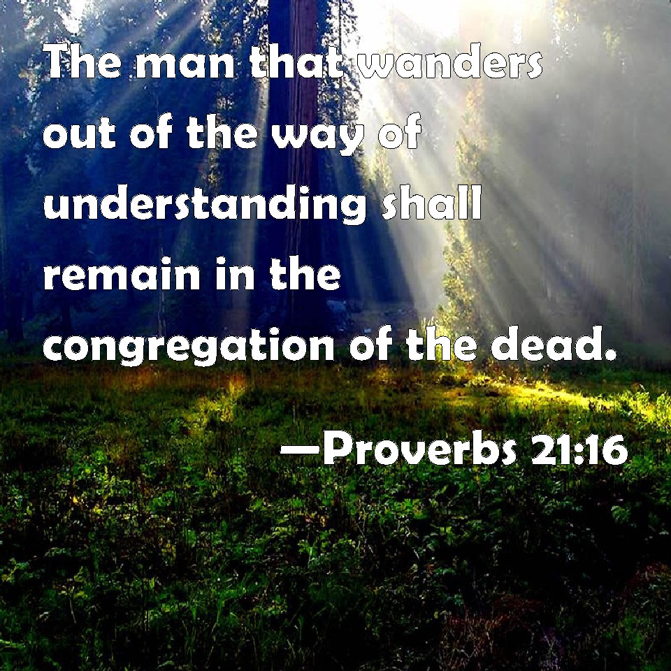 Proverbs 21:16 The man that wanders out of the way of understanding shall remain in the congregation of the dead.