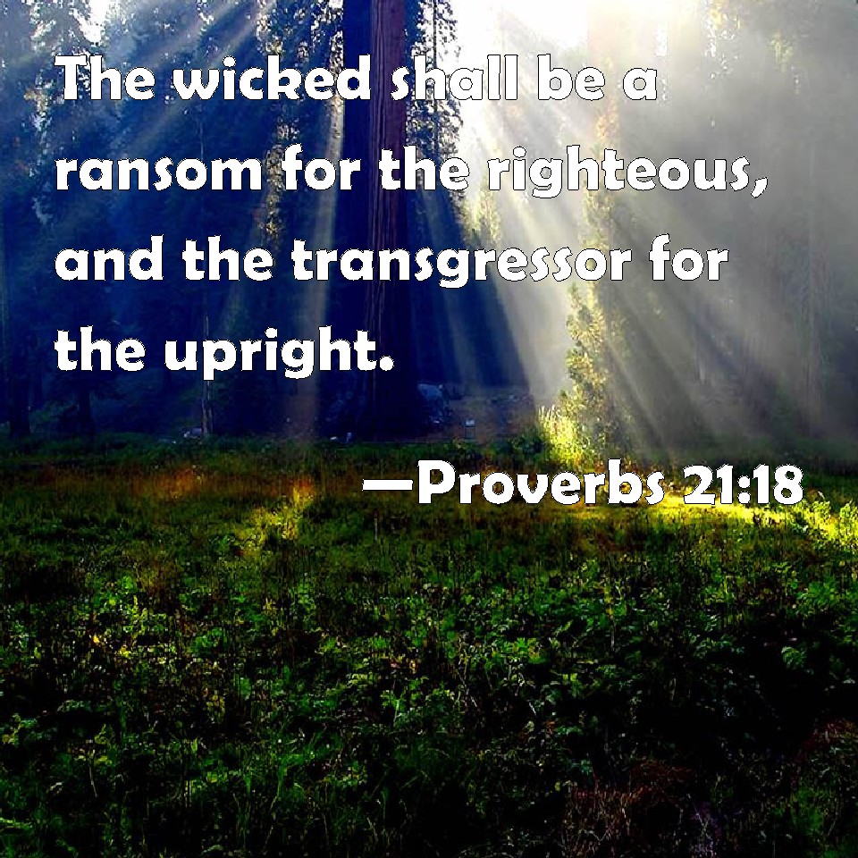 Proverbs 21:18 The wicked shall be a ransom for the righteous, and the transgressor for the upright.